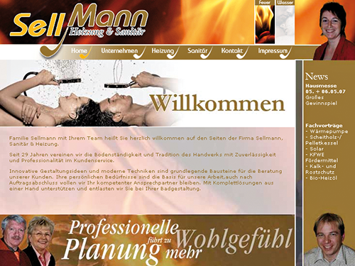 Layout und Programmierung der Seite "Sellmann Heizung & Sanitär", Feuer- & Wasser-Version