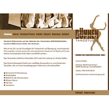 Layout der Seite des Tanzstudios "Bühneneingang"
