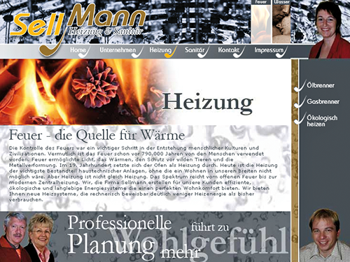 Layout und Programmierung der Seite "Sellmann Heizung & Sanitär", Feuer- & Wasser-Version