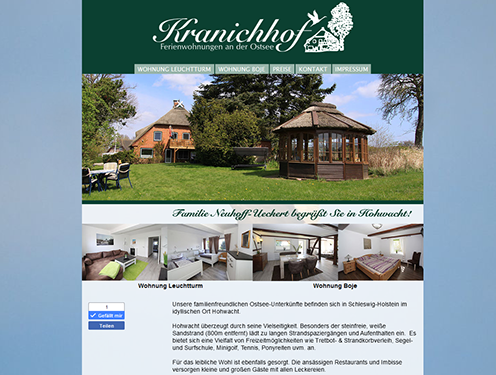 Layout und Programmierung der Seite "Kranichhof"
